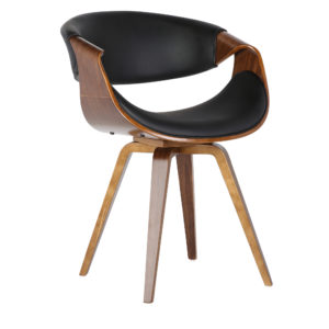 Cadeira em madeira com assento e encosto estofados em PU ou tecido.